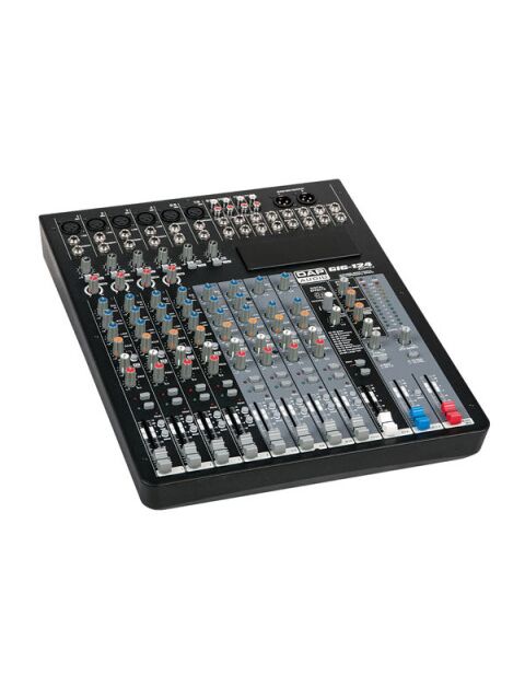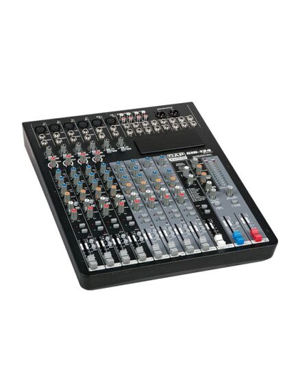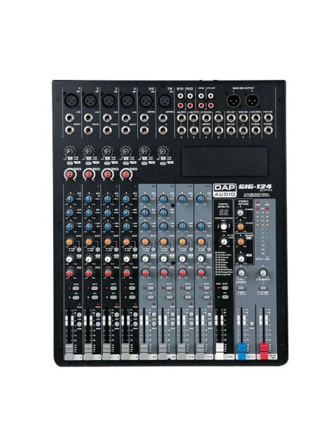 The GIG-124 CFX Mixing Console is packed with features that cannot be found in other consoles of it's size: 6 mono (provided with ultra low noise microphone pre amplifiers and Phantom Power at +48 Volt ) and 4 stereo input channels. Each of them are provided with a 3-band equalizer for HI, MID and LOW controls, as well as 2 auxiliary control, build-in 24-bit DSP effect with 100 presets, highly accurate 12-segment bar graph meters and 2-track inputs assignable to main mix, control room/phones or group outputs.